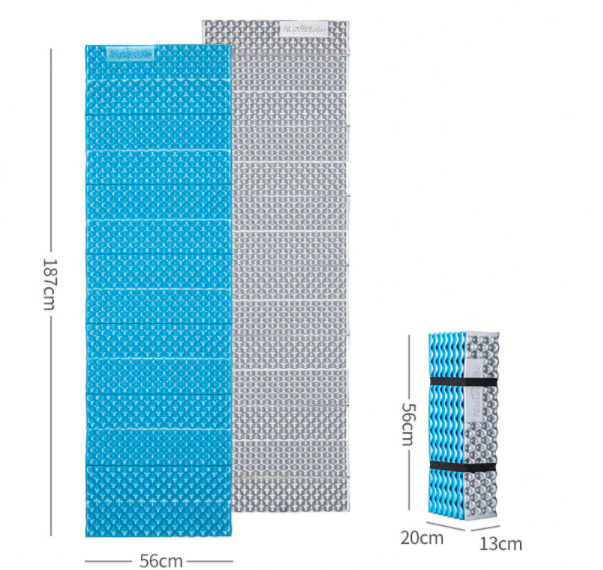 Складной коврик для туризма и активного отдыха. Цвета на выбор – голубой и жёлтый. Такой коврик обеспечит вам уют во время пребывания на природе. Он упаковывается в специальную удобную сумку для хранения и переноса. Вес достигает около 530 грамм. В качестве материалов были использованы IXPE + алюминиевая пленка. Размеры в сложенном виде составляют 56*13*20 сантиметров. В развёрнутом виде размеры коврика составляют 187 на 56 сантиметров.